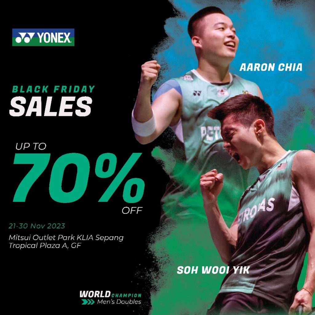 Elevate your badminton game with extraordinary deals on Yonex equipment! From November 21st to November 30th, KLIA Mitsui Outlet Park is offering an impressive up to 70% discount on all Yonex products. This exclusive sale is a must-visit for badminton lovers like yourself!